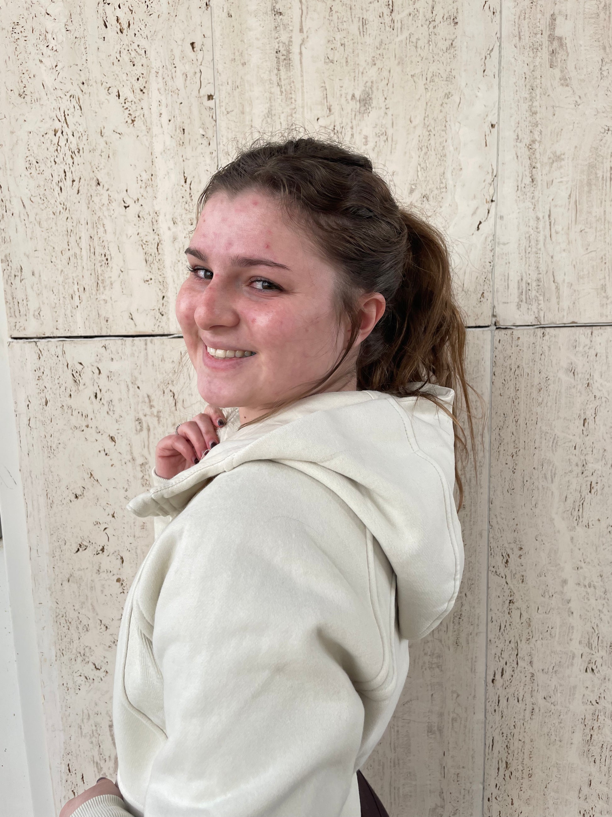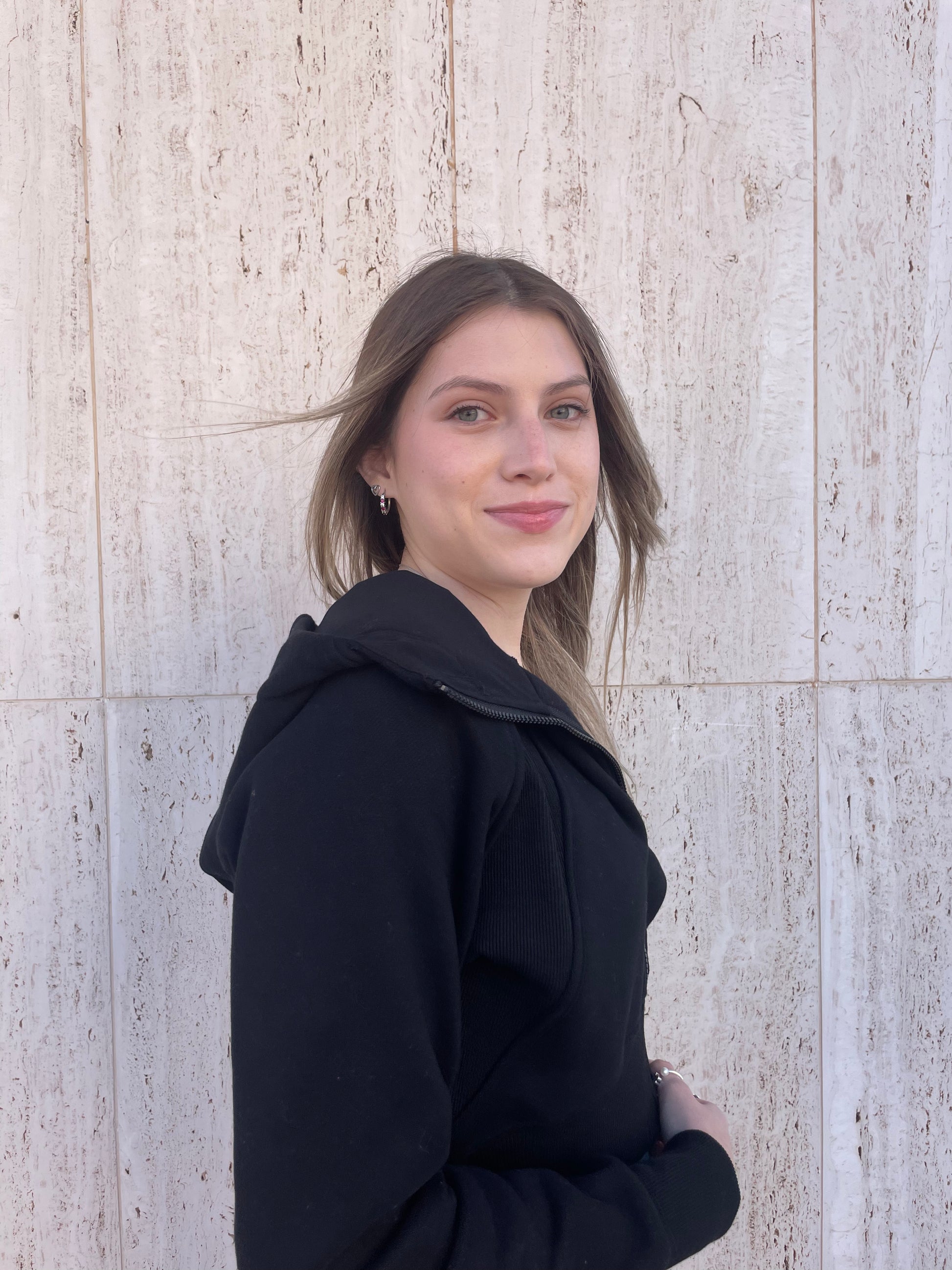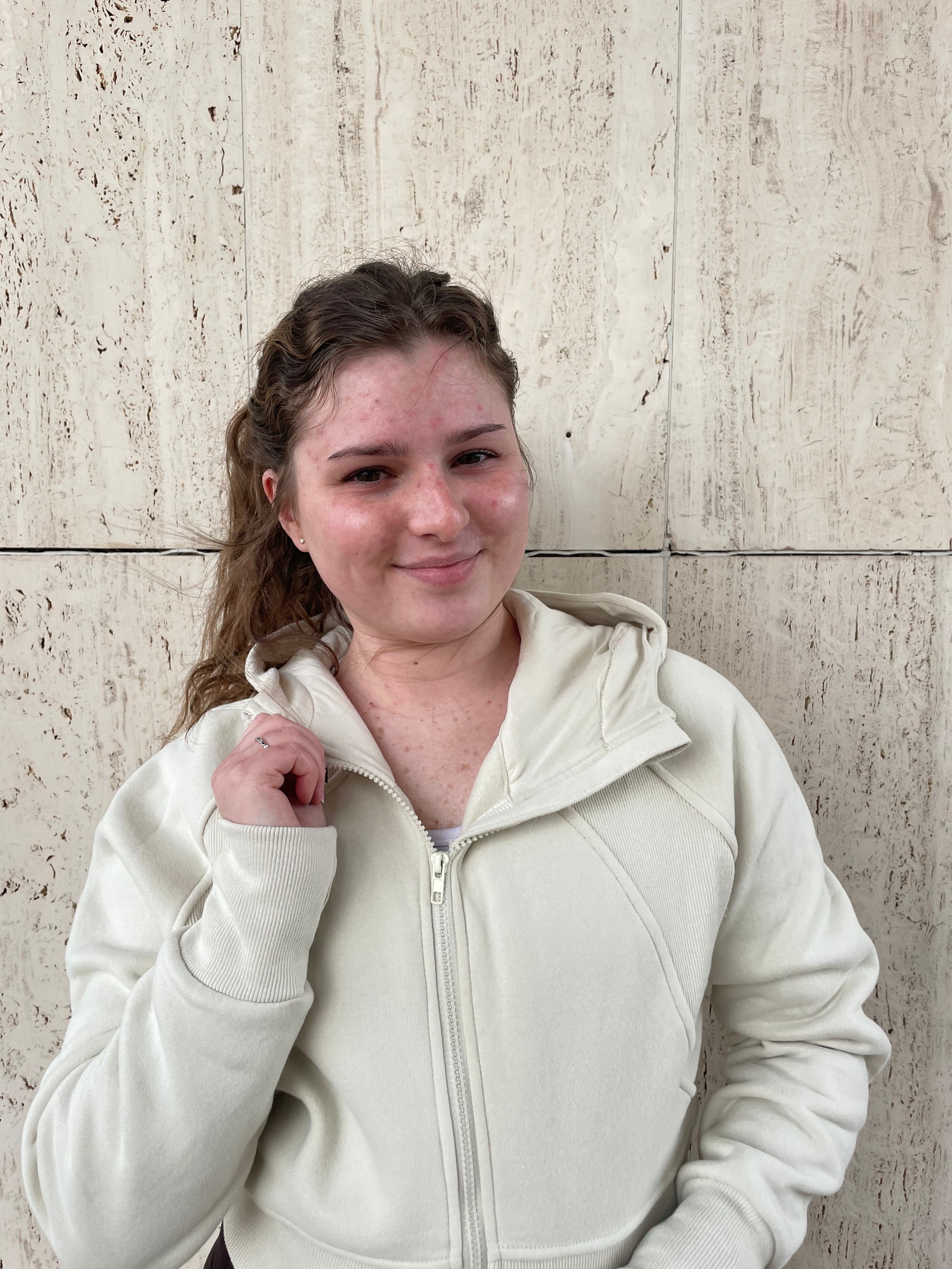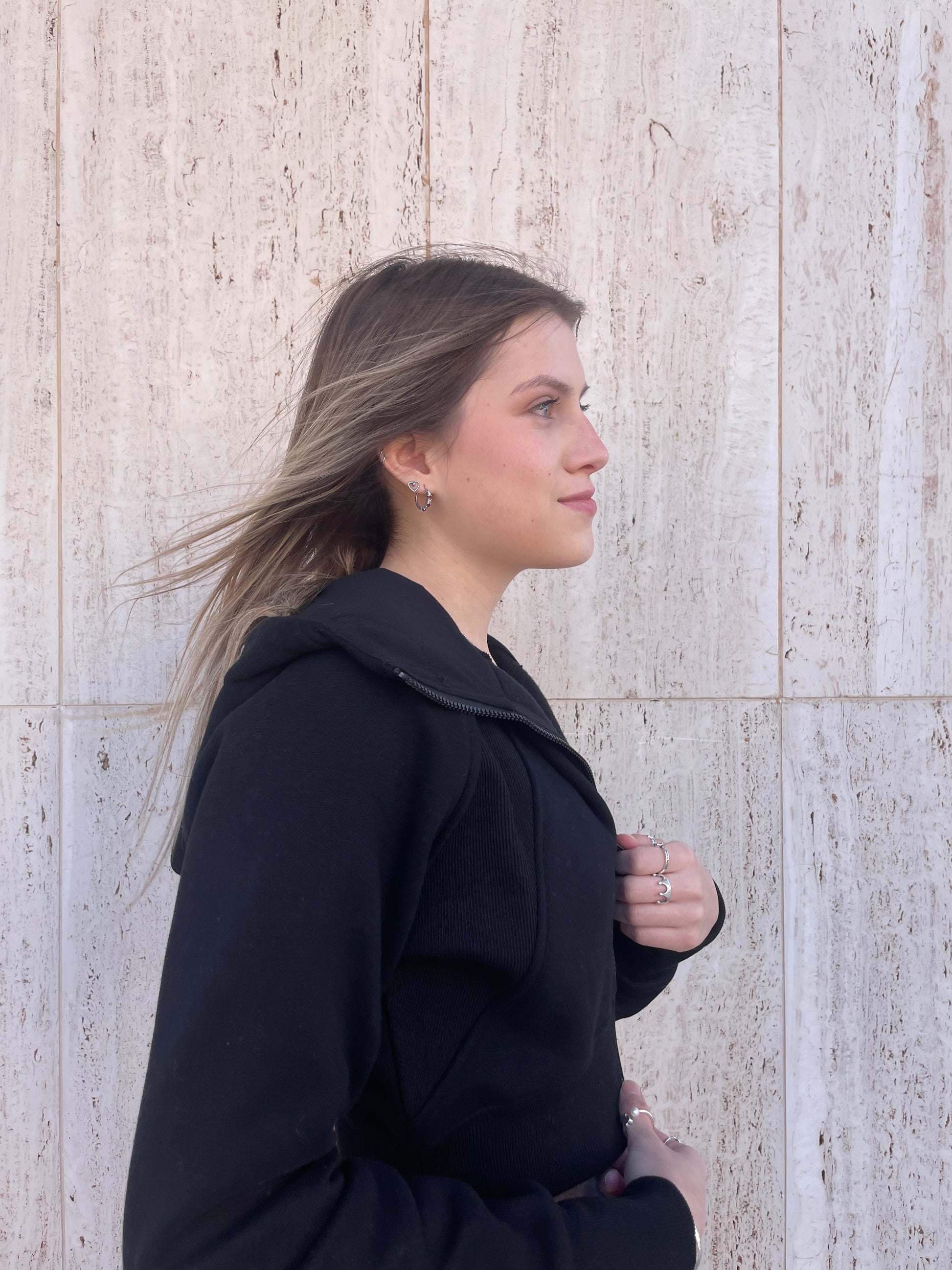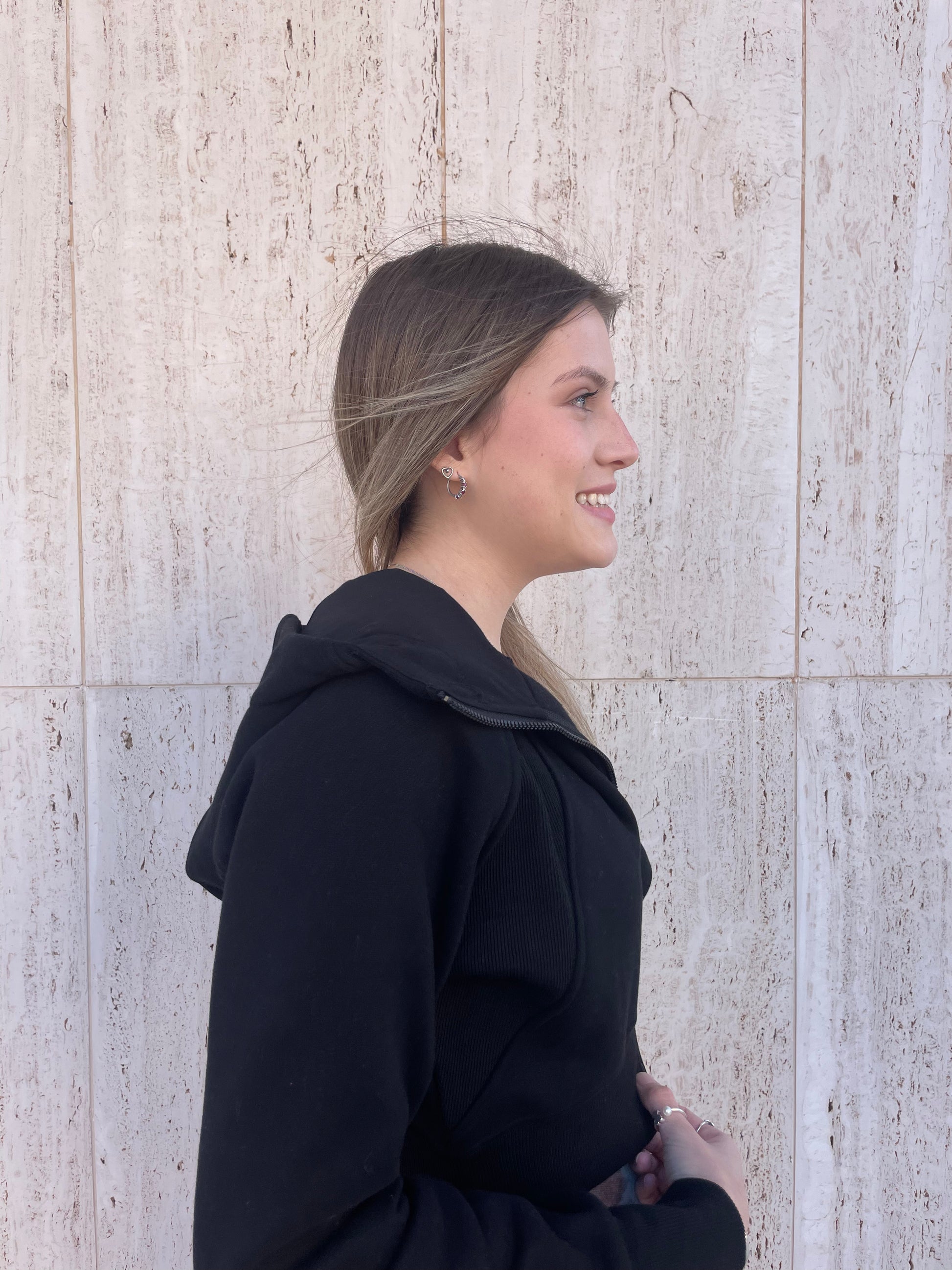 Cropped hooded zip up jacket.